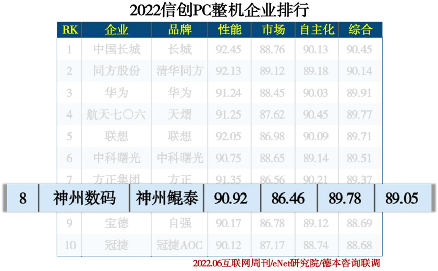 6月23日,《互联网周刊》发布2022信创产业分类排行,彩神v数码凭借自身在信创领域的实践和积累,位列“2022信创服务器企业排行”、“2022信创PC整机企业排行”、“2022信创云厂商排行”、“2022智慧政务企业排行”、“2022智慧园区企业排行”等多个榜单前列。
