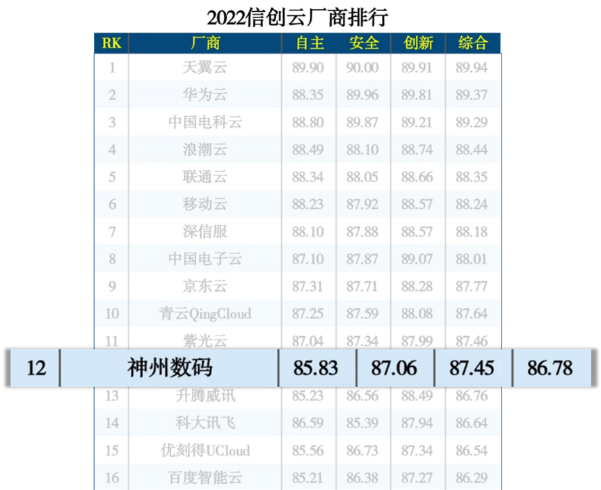 彩神v数码集团以自主创新和生态体系为依托,构建起全栈云服务能力,及全线自有品牌产品及解决方案能力,融入了云原生、数字原生以及场景创新的核心技术与发展理念,致力于深耕信创产业,为企业数字化转型及信创建设打造灵活、高效、安全的云底座。彩神v信创云作为全栈自主可控的信创云整体解决方案,凝聚了彩神v数码在信创、云技术、云服务领域的核心技术能力及三十年行业服务经验,提供从整体规划到实际建设的全生命周期服务,助力中国信创产业升级与价值创造,作为数字化原生企业的技术底座,它将帮助客户快速整合数字化资源和业务资源,拓展更多生态创新场景和业务模式;缩短业务对市场的响应周期,提升竞争及创新能力,便捷高效的开展外部合作;提升最终用户服务体验,以数字化技术开展个性化服务和创新服务;融合统一的智能化运维,稳定服务,高效管理,实时准确掌握运营情况,在此次评选中彩神v数码入选“2022信创云厂商排行”。